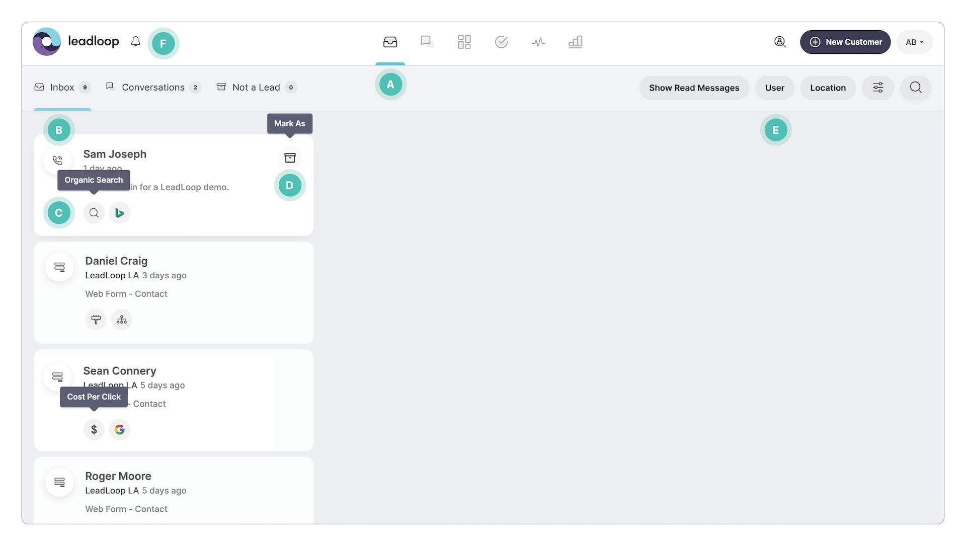 - Keep Tabs on new Inbox traffic by opening the Notifications panel from anywhere in LeadLoop.