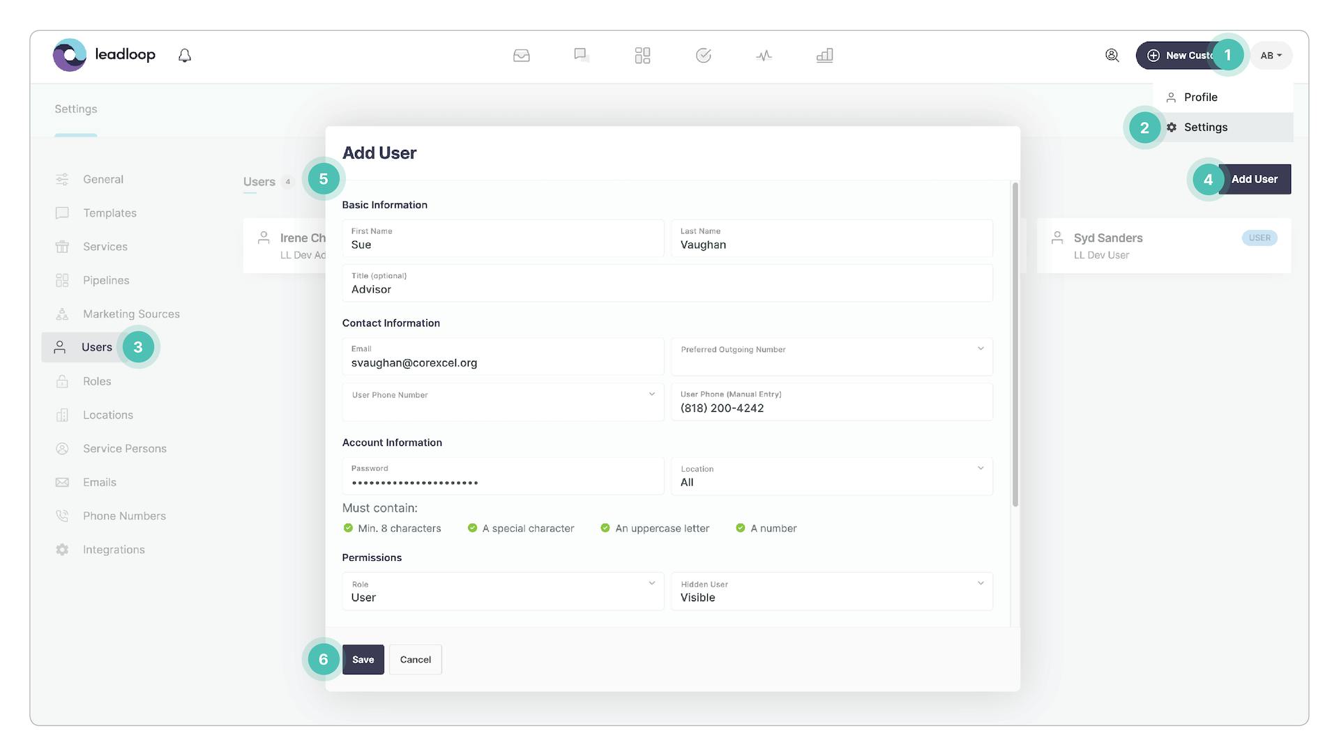 To add a User to LeadLoop