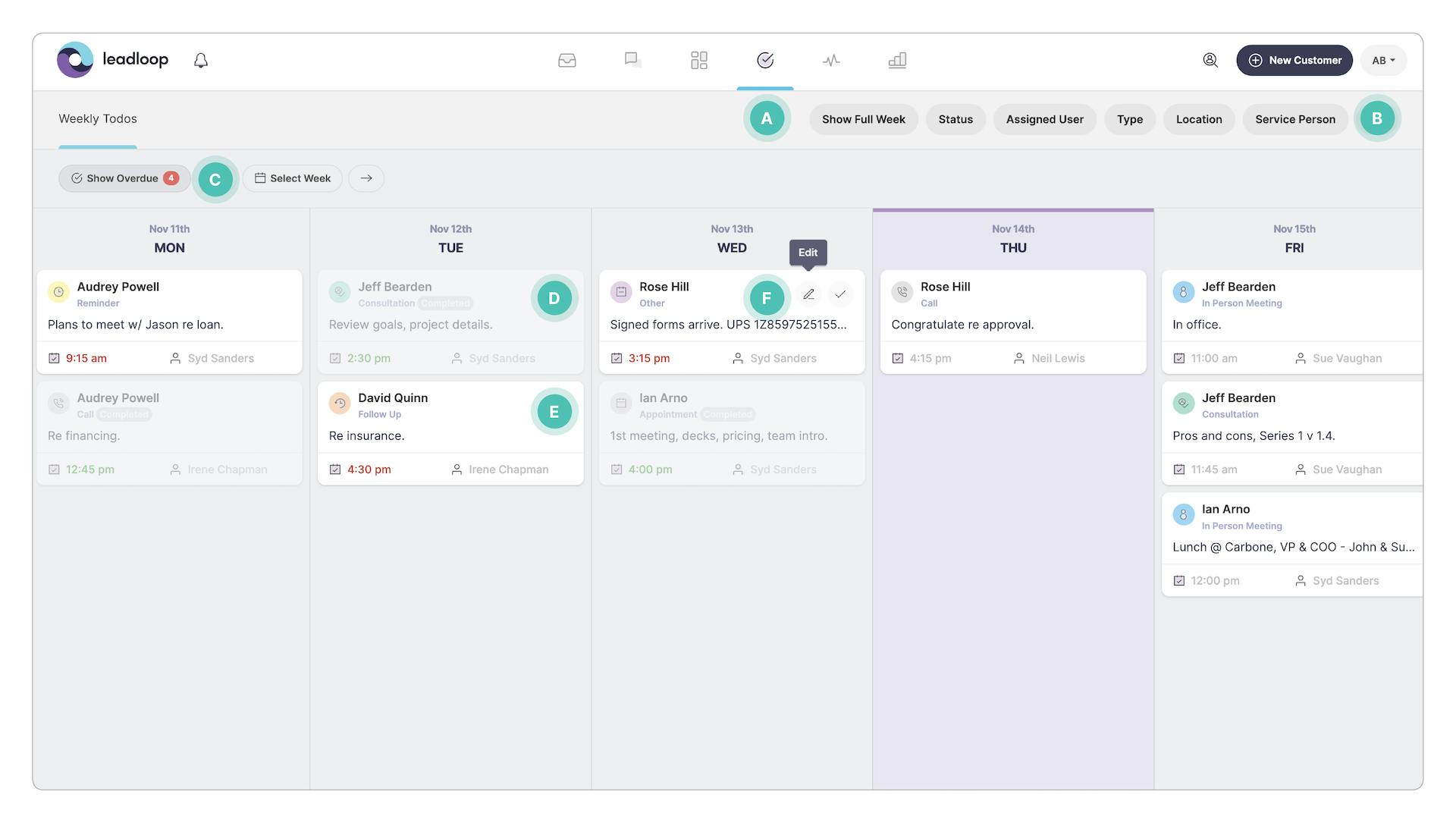 - Edit or mark ToDos as completed anywhere they appear across LeadLoop.